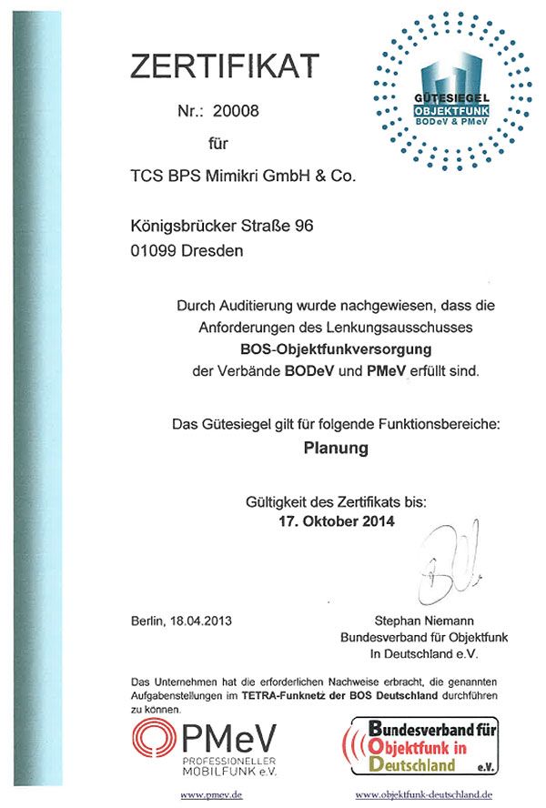TCS BPS Mimikri Systems GmbH & Co. KGKönigsbrücker Str. 96, Gebäude 1401099 DresdenFon +49 351 46679 0Fax +49 351 46679 99Email: Diese E-Mail-Adresse ist vor Spambots geschützt! Zur Anzeige muss JavaScript eingeschaltet sein!