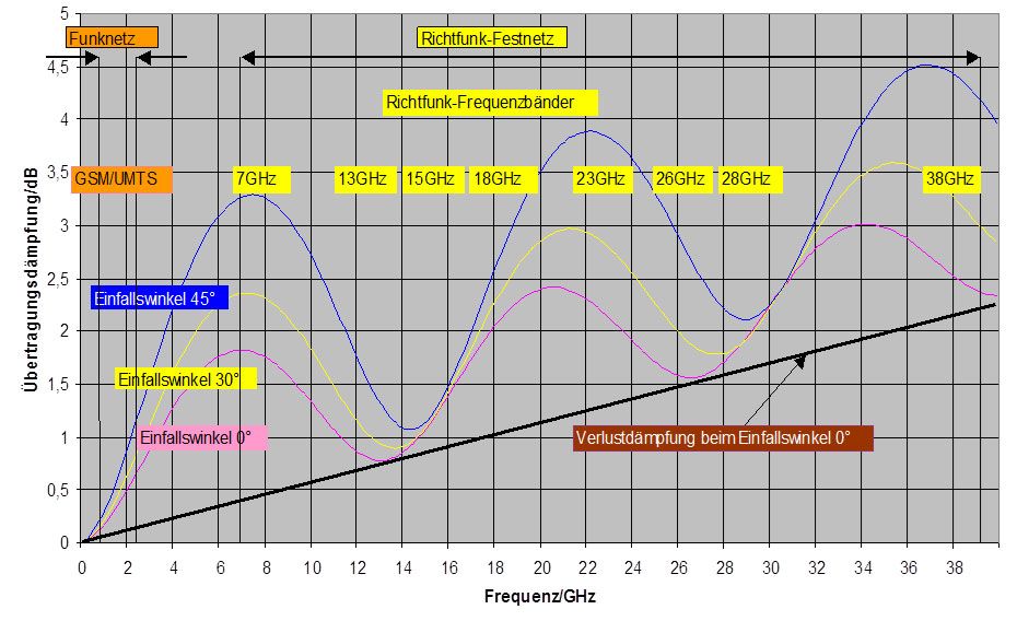 Darstellung elektrischer Eigenschaften von Antennenverkleidungen Übertragungsdämpfung – Frequenzabhängigkeit